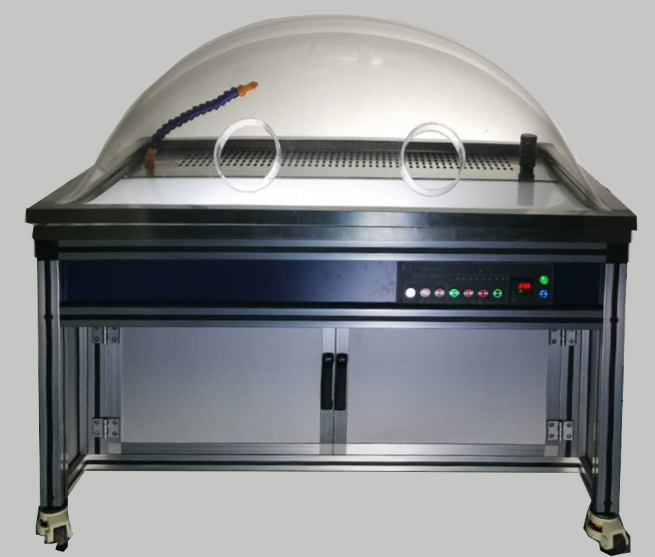 工作原理:本设备隔离罩采用高透明度的亚克力材料,为档案、书报等纸 质文件的清洁、修复,提供 “隔离” “负压” “净化” “调湿” “双 向照明” 的修复工作空间平台。